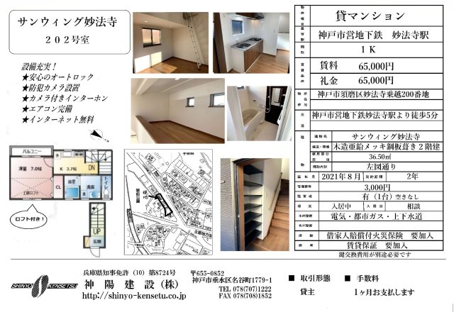 - サンウィング妙法寺 202|神戸市須磨区妙法寺(神戸市営地下鉄線妙法寺駅)のマンション物件詳細